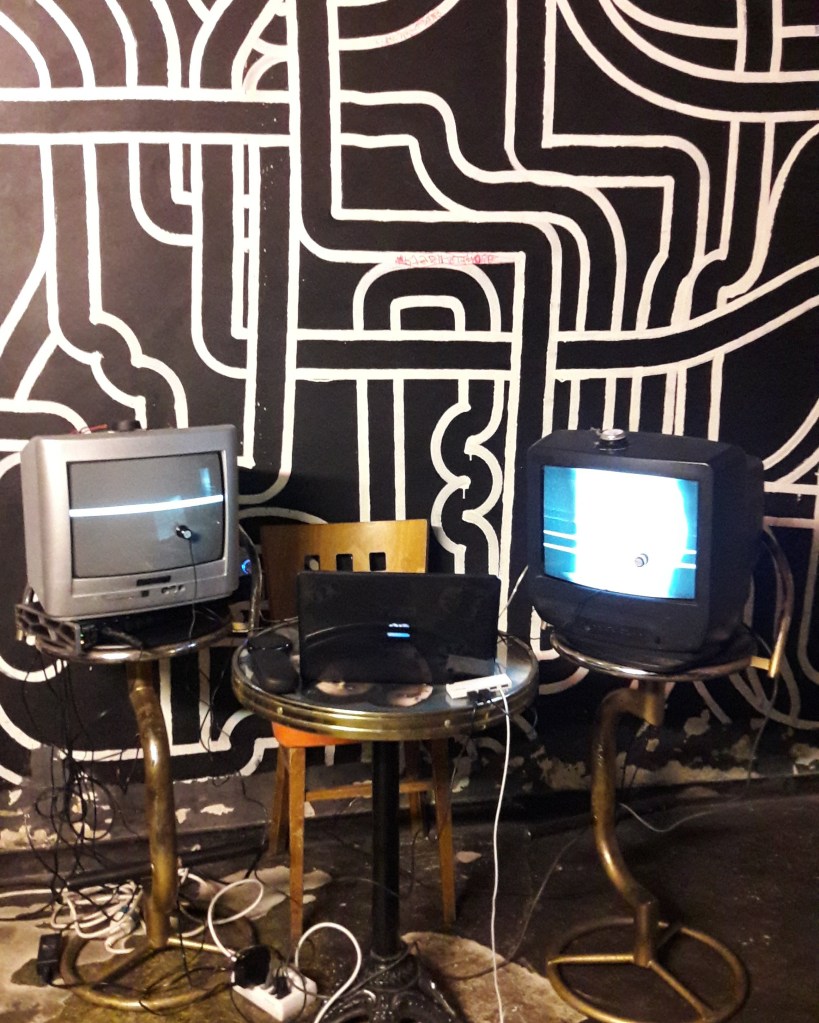 Drawing upon technical principles and research such as the interaction between sound and images, feedback mechanisms, sonic drones, and spatialization, this performative installation represents a continuous exploration of the inaudible vibrations that surround us in urban areas, with a particular focus on those emitted by old televisions.