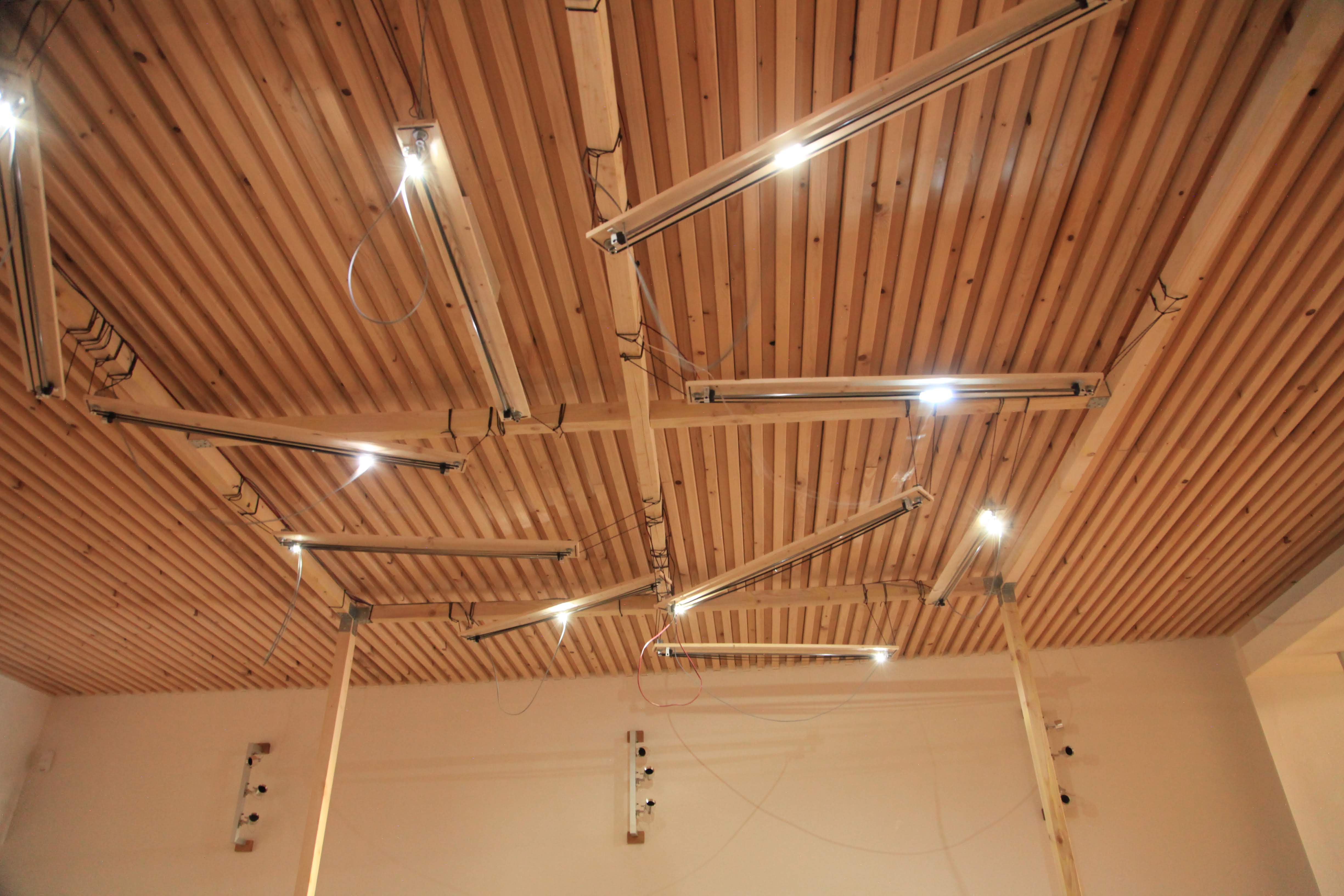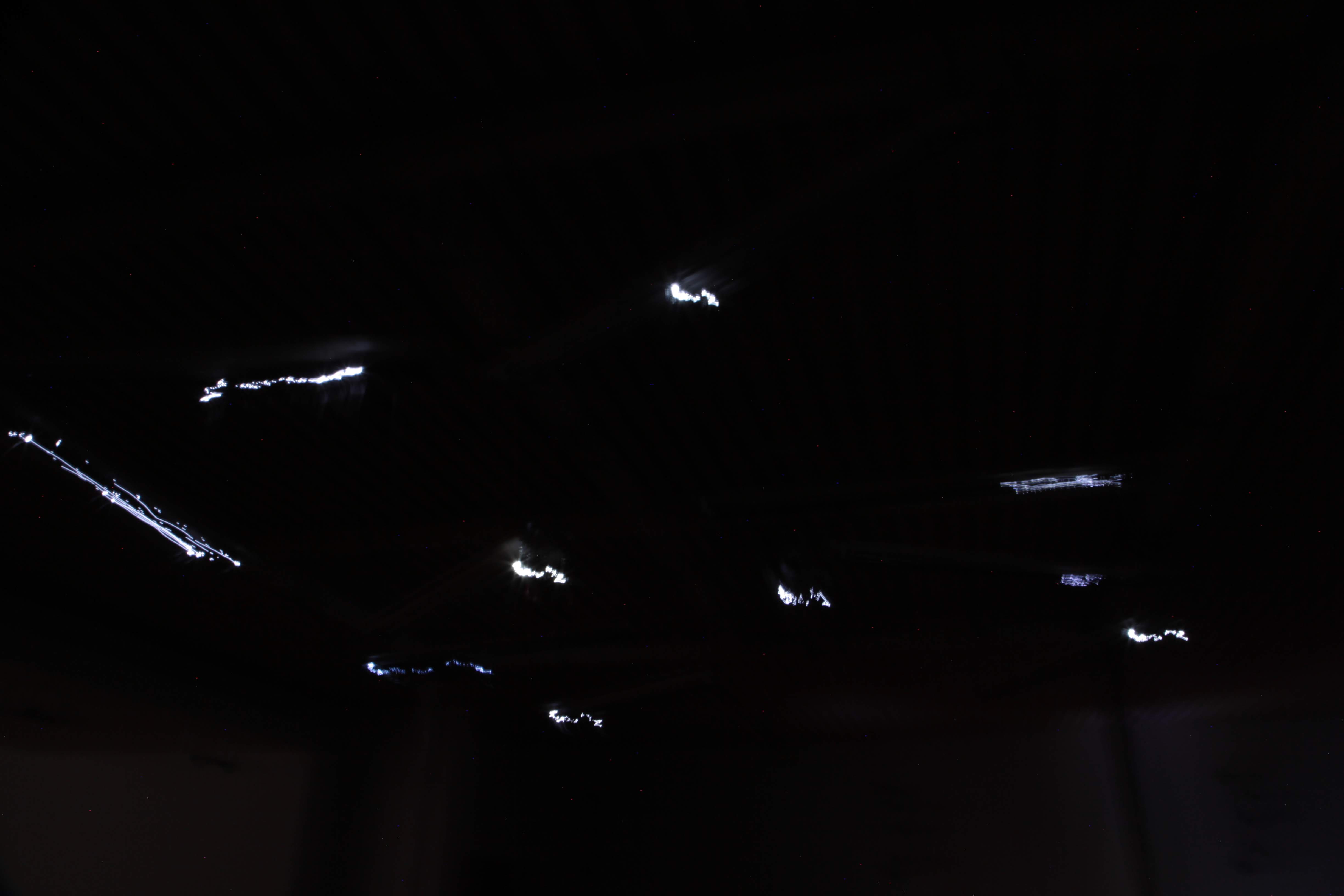 Octantis est une installation qui orchestre un plafond suspendu composé de moteurs d’imprimantes et de LEDs en mouvement. Elle comprend plus de 10 mécanismes et 20 moteurs d’imprimantes pour animer les LEDs, évoquant ainsi une constellation en perpétuel mouvement. Un réseau de micro-contacts, de capteurs de lumière et de bobines électromagnétiques capte le son produit par les LEDs, qu’ils soient allumés ou éteints, lorsqu’ils traversent divers microphones et capteurs. L’ensemble de l’appareil est contrôlé par ordinateur et peut être présenté comme une installation autonome ou dans le cadre d’une performance interactive.