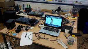 One of the objectives of this installation is to render audible the waves generated by light and to explore the interactions between sound and light.
