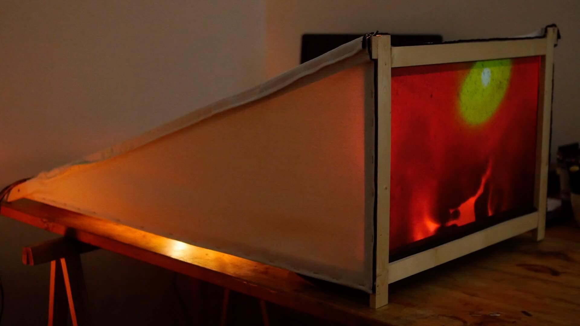 – L’écran-chambre, un écran numérique réinterprété, évoquant un théâtre d’ombres.