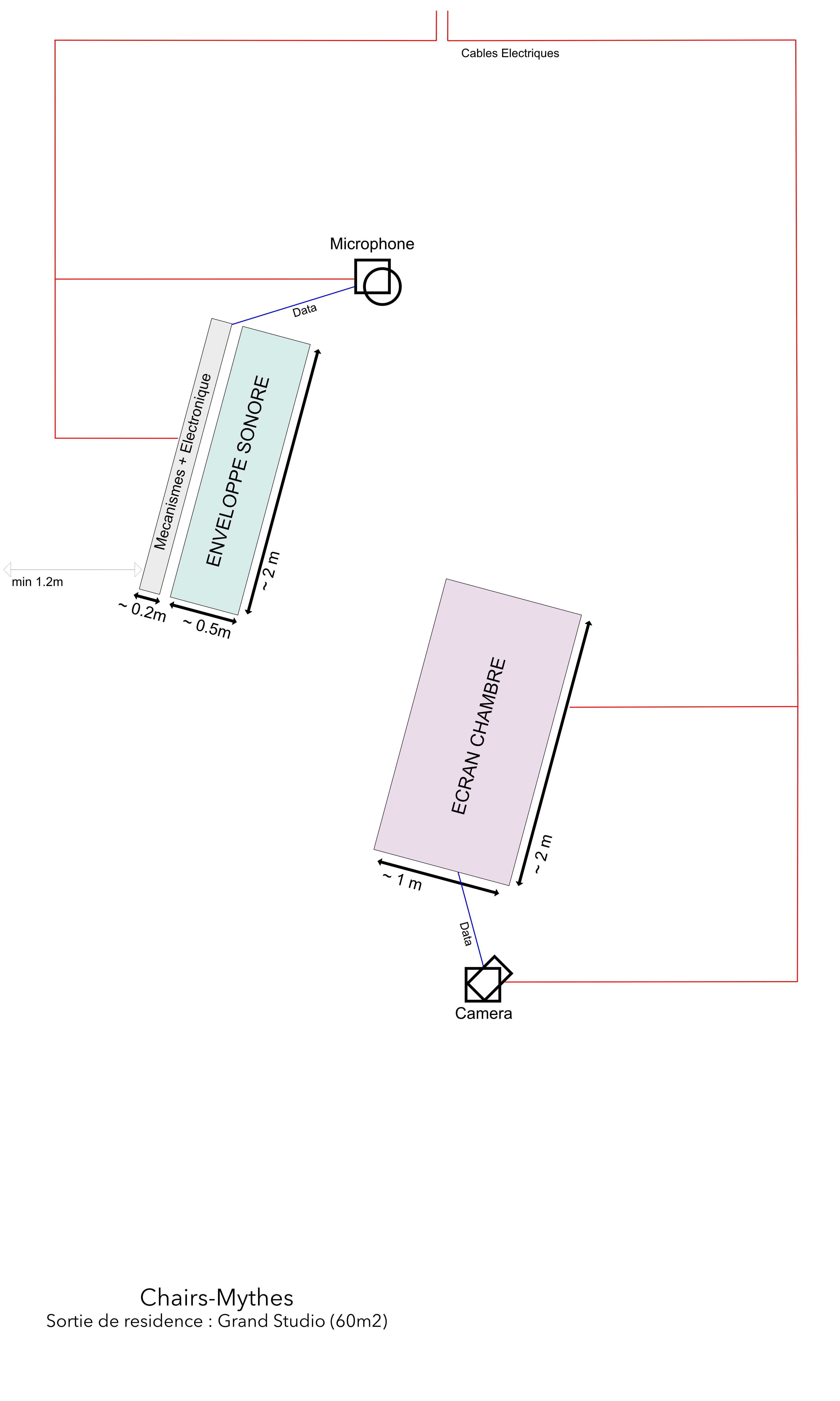 L‘installation interactive Chairs Mythes expose de manière sensible les méandres de l’esthétique numérique de l’écran et de l’esthétique mécanique du haut parleur, rend transparent et compréhensible leurs fonctionnements et explore les potentialités de recyclage et de détournement de ces objets techniques.